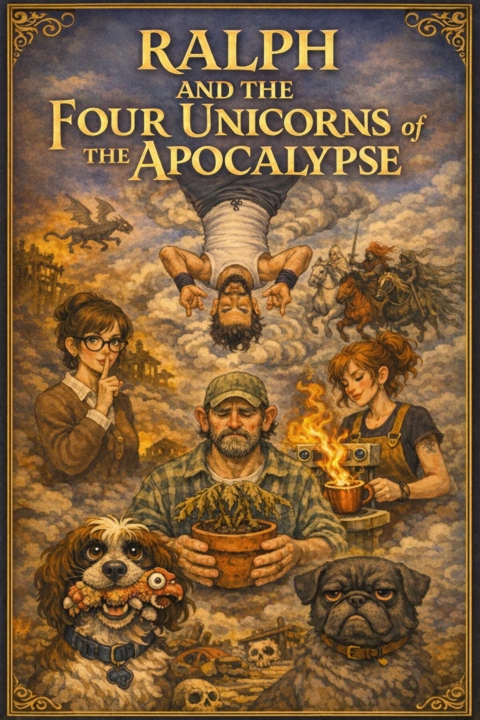 Cover Mock-up featuring Traditional Hell Hound Bakery Banning Poster for Agro, after he raided the Sausage RollsTrevor the Dragon Unconscious in the Pub Garden of Tuckers GraveyardFinal Book Cover Design for Ralph and the Four Unicorns of the ApocalypseConcept Art Render for The Elders from Ralph and the Four Unicorns of the ApocalypseConcept Art Render for the World Spirit from Ralph and the Four Unicorns of the ApocalypseConcept Art Render for The Sleeper from Ralph and the Four Unicorns of the ApocalypseConcept Art Render of a Possible Road Sign Near The Tuckers GraveyardConcept Render of a 1930’s Style Travel Poster for Somerset, featuring key landmarks and a DragonEarly Cover Design, Showing Ralph, Agro, and the 4 UnicornsWhen the World Need A True Hero Poster